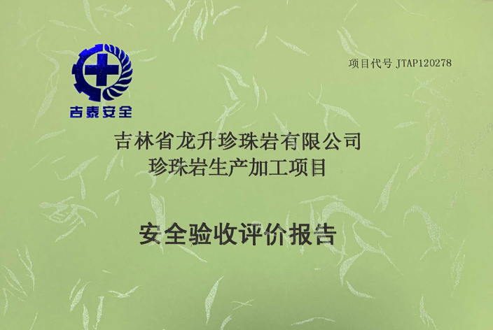 JTAP120278--吉林省龍升珍珠巖有限公司珍珠巖生產(chǎn)加工項(xiàng)目安全驗(yàn)收評(píng)價(jià)