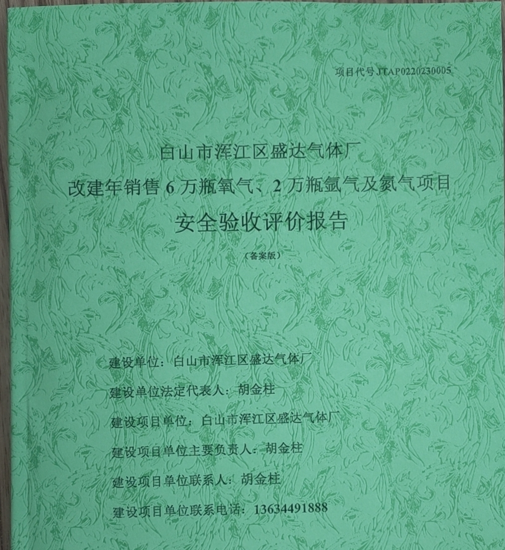 JTAP0220230005--白山市渾江區(qū)盛達(dá)氣體廠改建年銷售6萬瓶氧氣、2萬...