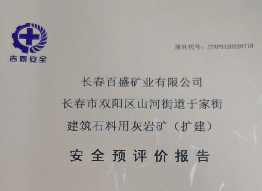 JTAP0120220373--長春百盛礦業(yè)有限公司建筑石料用灰?guī)r礦安全現(xiàn)狀評價
