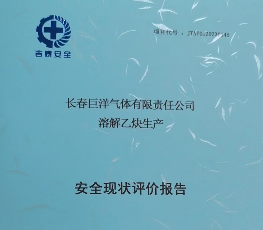 JTAP0120230145--長春巨洋氣體有限責(zé)任公司溶解乙炔生產(chǎn)安全現(xiàn)狀評價